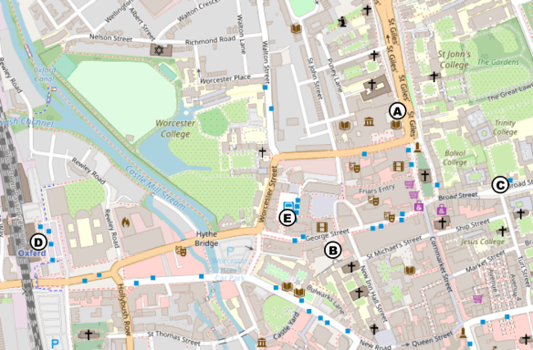 The conference venue is in walking distance from the Oxford train station and the central bus station (Gloucester Green).
